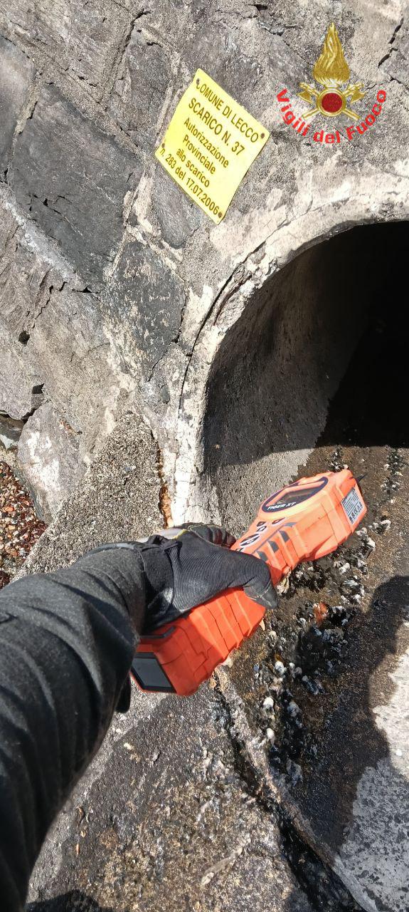 Segnalato un possibile inquinamento vicino all’imbarcadero di Lecco: sopralluogo dei Vigili del fuoco