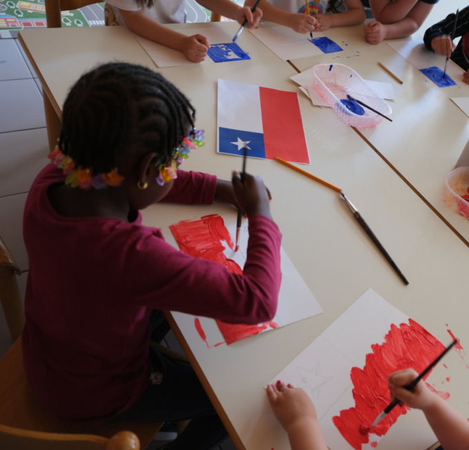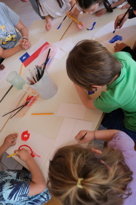 Sono seguiti poi dei laboratori, durante i quali i piccoli alunni hanno riprodotto le bandiere con tempere e pennelli.
