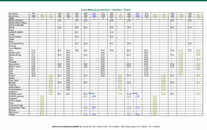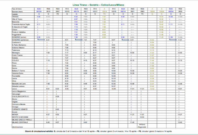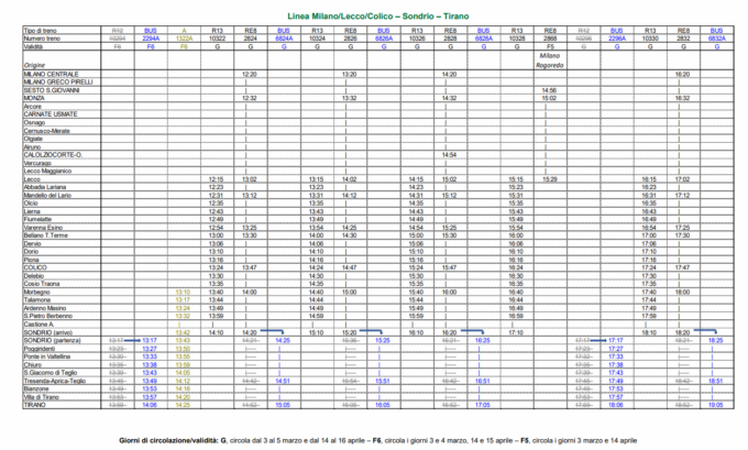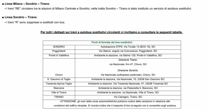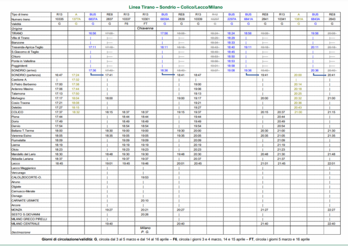 Nel fine settimana 3/5 marzo 2023, Rete Ferroviaria Italiana (Gruppo FS) effettuerà lavori di manutenzione straordinaria sulla linea Lecco-Tirano. Per consentire l’operatività dei cantieri la circolazione sarà sospesa fra le stazioni di Sondrio e Tirano. Interessati solo i treni del trasporto regionale.