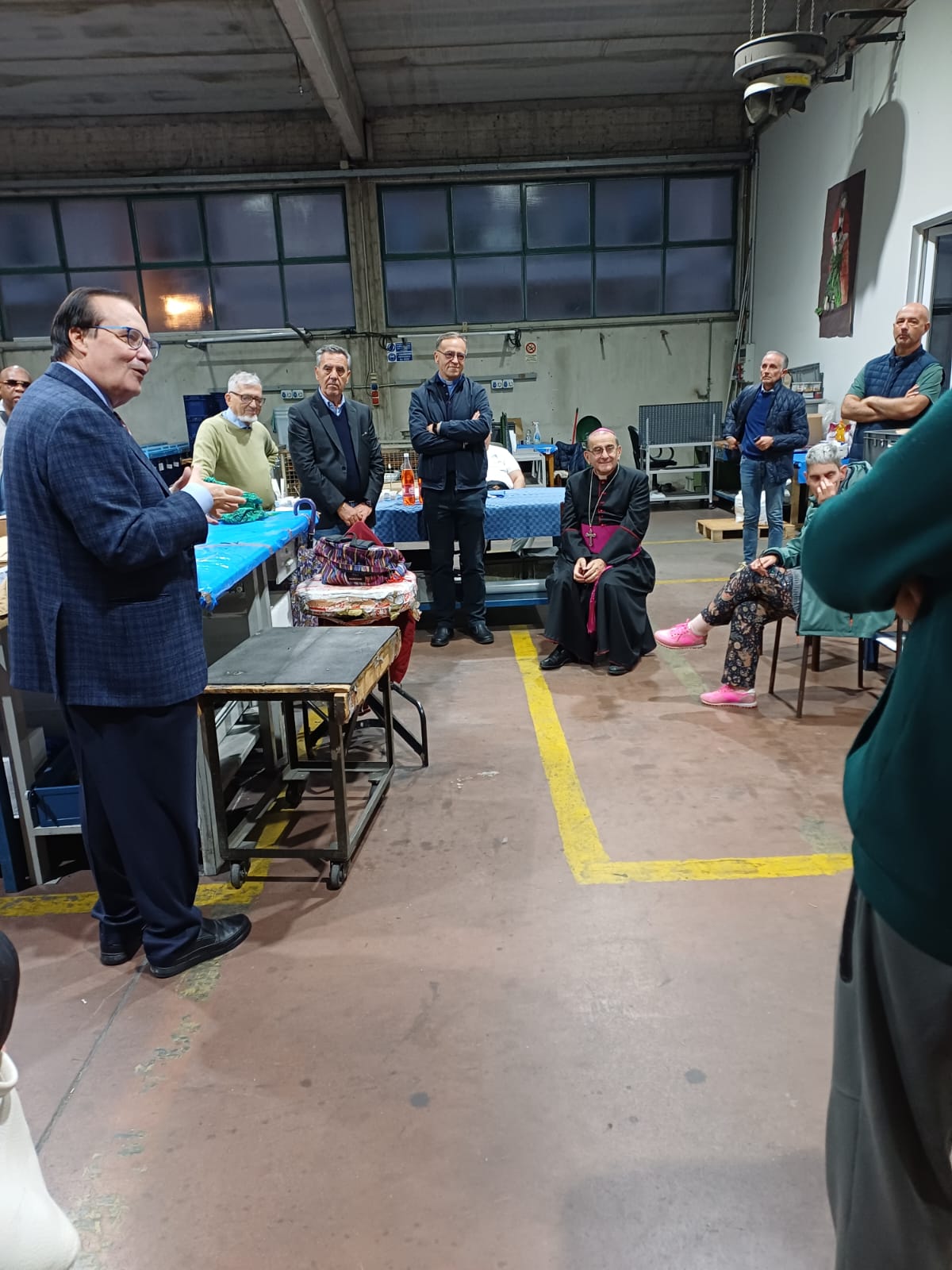 L’arcivescovo, dopo essersi intrattenuto amabilmente con tutti i presenti, ha voluto conoscere la storia della cooperativa sottolineando “l’importanza di questa esperienza non solo per la crescita personale e professionale di chi vi lavora, ma anche come contributo alla costruzione di un’opera utile alla società”.