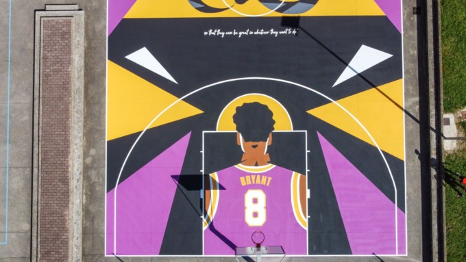Valmadrera, terminata la riqualificazione artistica del campo da basket in via Casnedi: un tributo a Kobe Bryant