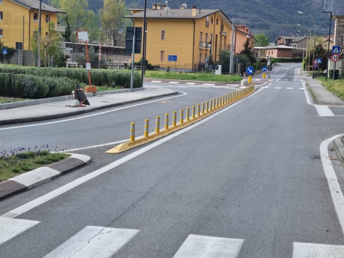 L’intervento va ad aggiungersi ai cordoli stradali in gomma per la delimitazione delle corsie installati nel mese di marzo al fine di ridurre un fenomeno molto pericoloso, riscontrato in diverse occasioni dalle pattuglie della Polizia Locale, cioè quello della percorrenza contromano da parte di automobilisti e motociclisti tra le due rotatorie stradali poste a poche decine di metri di distanza, sempre in frazione Parè.