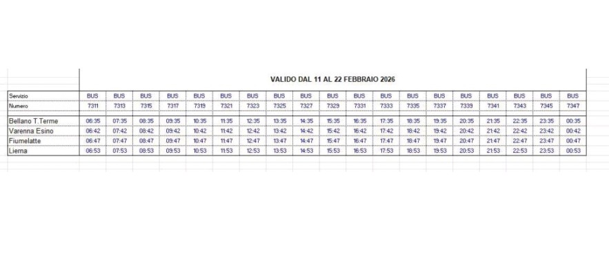 L’accordo prevede l’istituzione di un servizio di bus navetta che collegherà i Comuni di Bellano, Varenna, Fiumelatte e Lierna in direzione Colico/Lecco, con una frequenza di un bus ogni ora, dalle 6:35 del mattino fino alle 00:35 della notte. La fermata di Varenna in direzione Lierna sarà temporaneamente ubicata in Viale dei Giardini n. 3, con decorrenza dall’11 febbraio fino al 22 febbraio 2026.