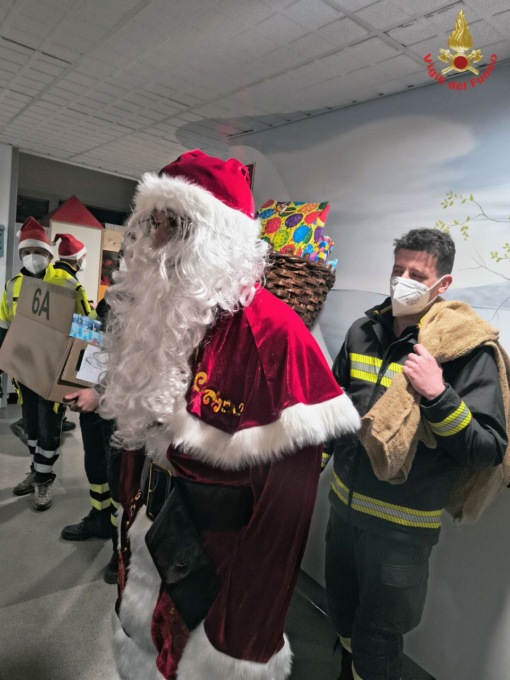 Come tradizione i Vigili del fuoco di Lecco sono andati, insieme al loro collega Babbo Natale, a trovare i bambini della pediatria.