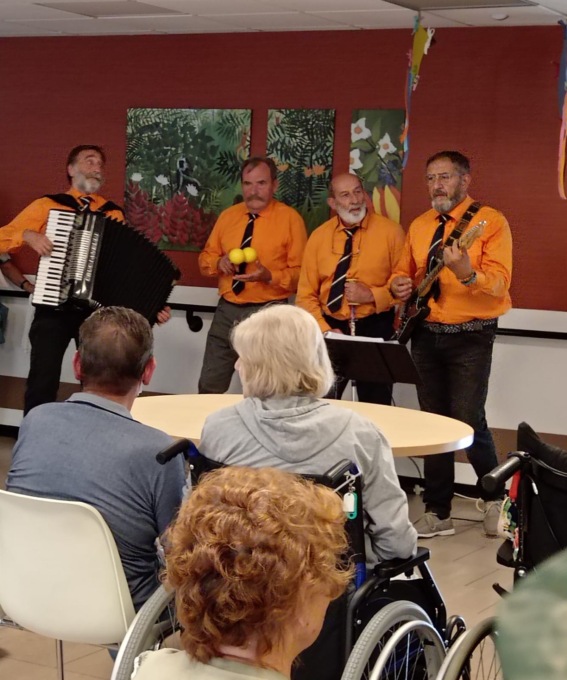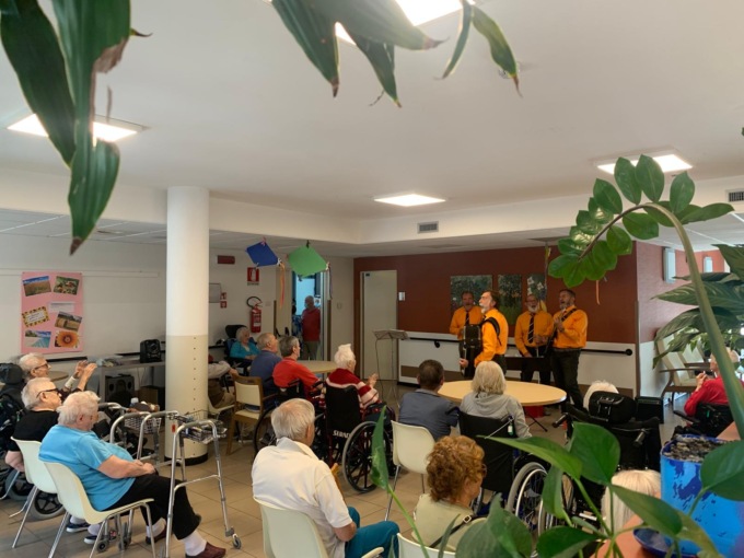 Le educatrici della RSA ” Villa Serena” di Galbiate, ieri, domenica 7 luglio 2024 alle 15:30, hanno invitato quattro amici speciali. Gabriele Bolis e l’inseparabile fisarmonica, Dario Bolis con la sua chitarra, Gilberto Garghentini e l’ormai conosciutissimo “basso-tolla” e Giovanni Gilardi con le maracas.