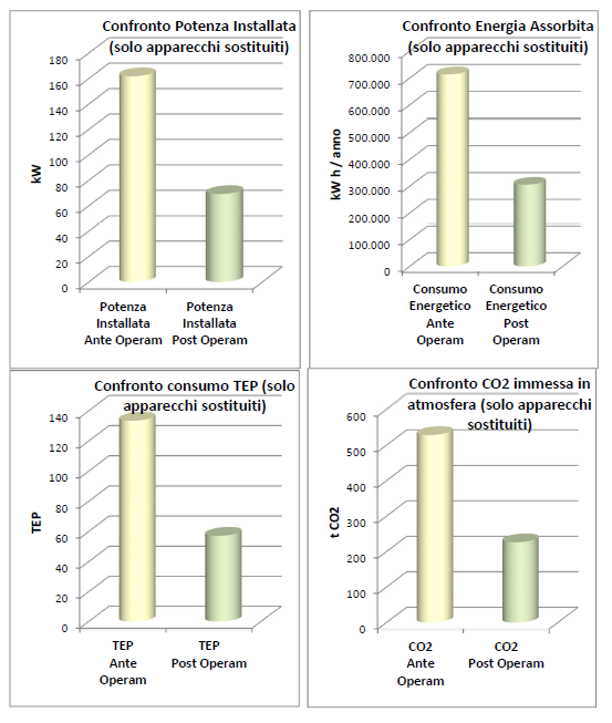Il nuovo intervento che è stato direttamente finanziato dal Comune di Lecco porterà a un ulteriore beneficio economico indiretto in relazione al canone convenzionale che l’ente corrisponde al gestore, dovuto alla quota di risparmio energetico e dunque economico generato dalla sostituzione delle lampade effettuata senza passare attraverso società convenzionata. Il Comune di Lecco beneficerà inoltre, in sede di adesione a una nuova convenzione, di un analogo conseguente risvolto economico positivo, un ricalcolo della convenzione Consip al ribasso, dato dal crescente numero di impianti a basso consumo installati in città.