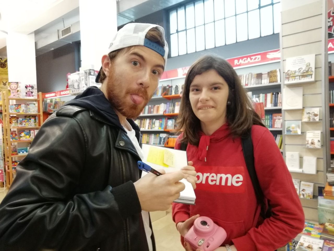 L'idolo delle giovanissime è stato ospite in libreria Cattaneo