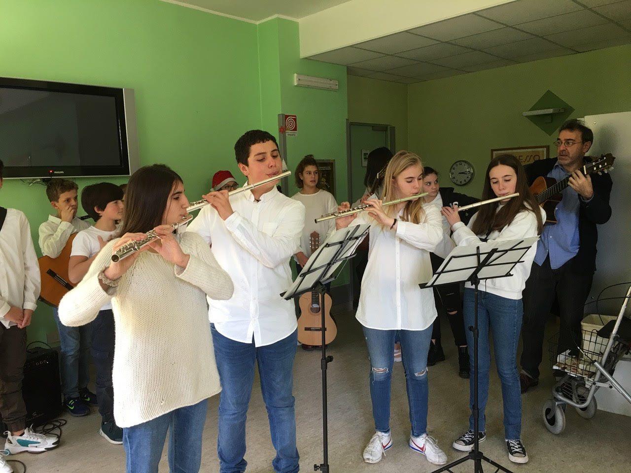 L’iniziativa, che costituisce un appuntamento ormai fisso nel periodo di Natale, si è svolta quest’anno in più contesti per favorire una più ampia partecipazione: esibizioni si sono tenute in Sala animazione per gli ospiti delle Residenze Grigne e Resegone, nell’atrio della Residenza Bettini e al primo piano della Residenza Medale.