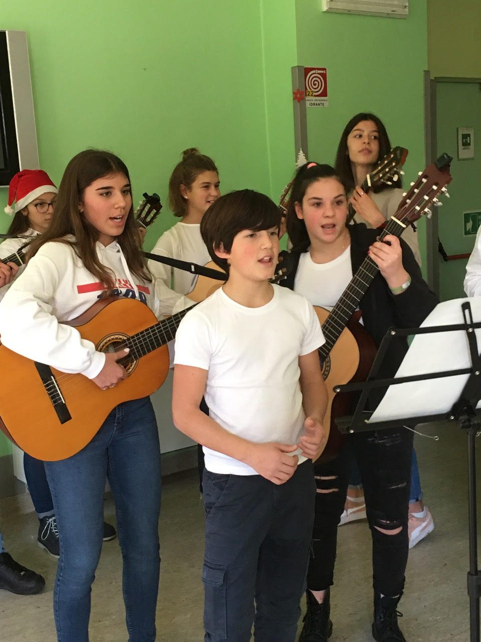 Erano presenti un gruppo del coro che coinvolge tutta la scuola e flauti, violini e chitarre delle classi seconda e terza dell’indirizzo musicale, accompagnati dai docenti Emanuela Milani (flauto traverso), Socrate Verona (violino) e Stefano Salvador (chitarra). A Socrate Verona e ad Emanuela Milani è stata affidata anche la preparazione del coro di istituto.