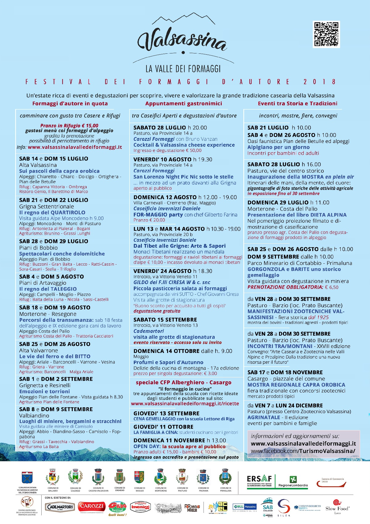 Dopo il primo assaggio con la Fiera del Taleggio, entra nel vivo il calendario di “Valsassina: la Valle dei Formaggi” , il progetto patrocinato da Slow-Food che coinvolge i comuni della Valle, la Comunità Montana, aziende casearie, rifugi e associazioni con l’obiettivo di promuovere tradizioni ed eccellenze legate alla filiera lattiero-casearia.