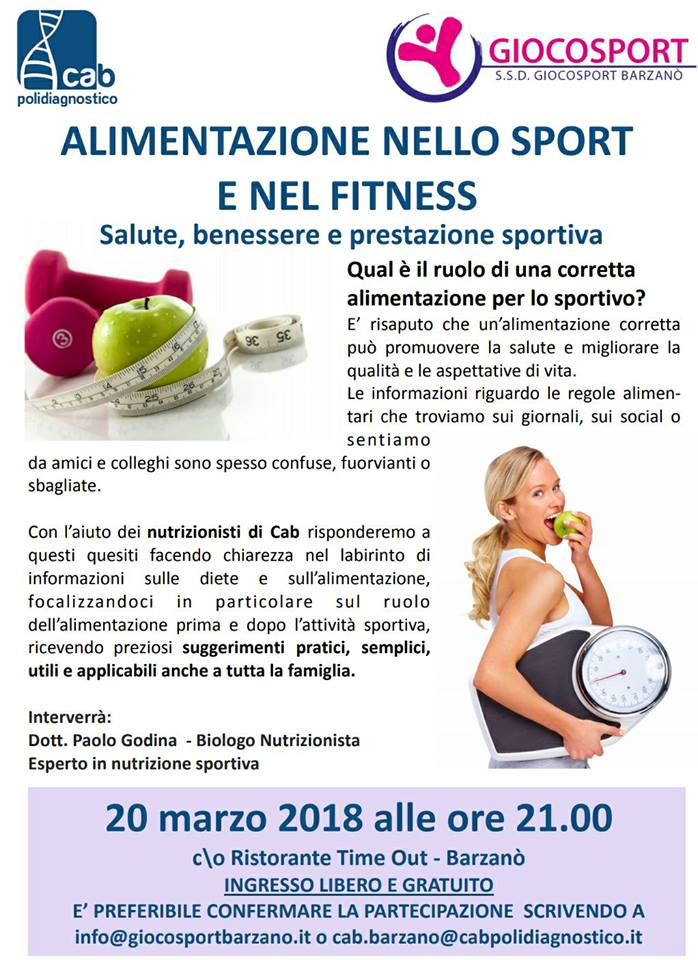 Qual è il ruolo di una corretta alimentazione per lo sportivo? Il dottor Paolo Godina, biologo nutrizionista, spiegherà al pubblico presente i segreti di una corretta alimentazione.