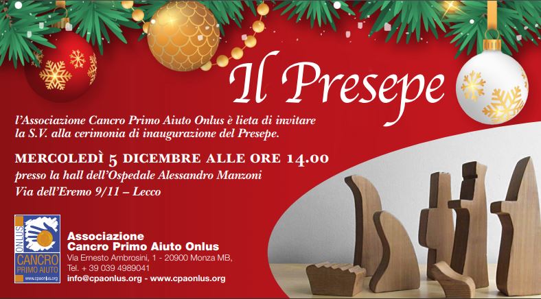 L’inaugurazione del presepe all’ospedale di Lecco avverrà mercoledì 5 dicembre alle 14, nella hall del Manzoni.