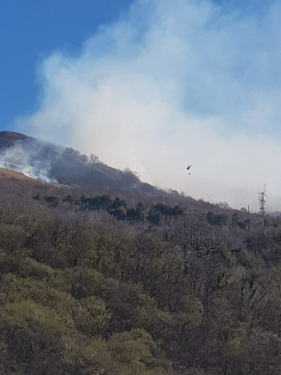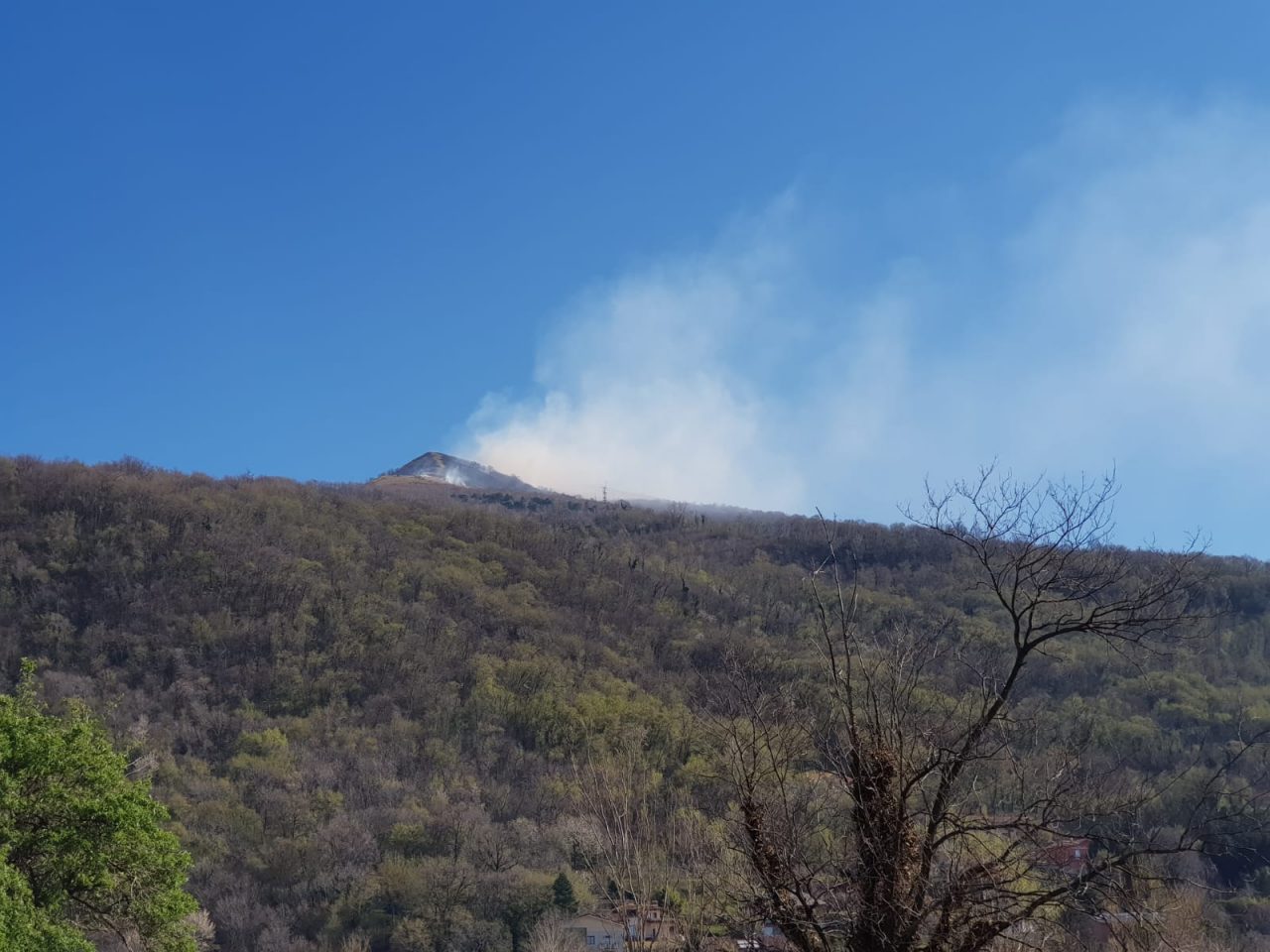 Le fiamme stanno dilagando vicino alla cima del monte. Sul posto ci sono le squadre dell’Anticendio boschivo supportate da un elicottero.