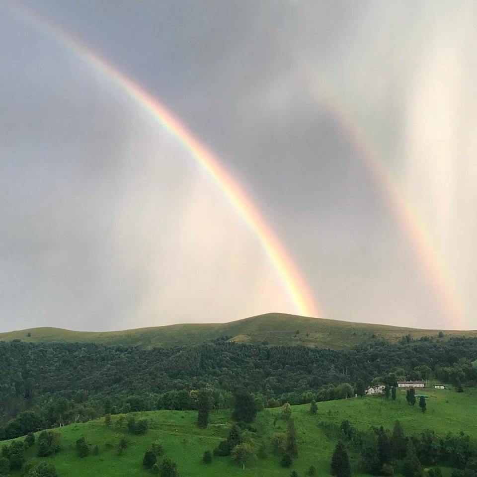 A nord l’azzurro. A sud il cielo minaccioso e grigio. In mezzo la meraviglia dell’arcobaleno, addirittura doppio in alcuni punti, che ha fatto capolino dei cieli del Lecchese.