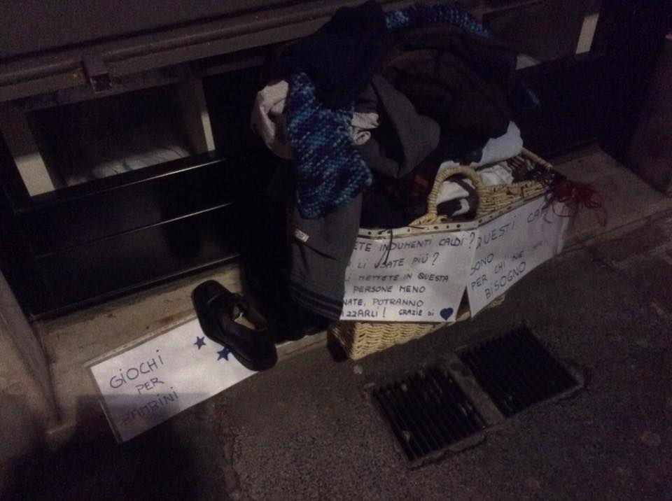 Assurdo, a Lecco rubati persino i vestiti per i poveri e giochi per bambini. A denunciare l’amaro episodio, l’ennesimo per altro, è Monica Milani, la titolare di un negozio in Viale Turati, al civico 79, a Lecco che da dicembre ha ideato una lodevole iniziativa. La negoziante infatti ogni notte da un paio di mesi espone un cesto fuori dal suo punto vendita. Chi vuole e puo’ deposita all’interno abiti ( capi caldi tipo calze,sciarpe,berrette,maglioni,guanti,per persone bisognose), ma anche giochi per bambini che vivono in famiglie dove i soldi, magari, servono per compare il cibo e non bambole e peluches.