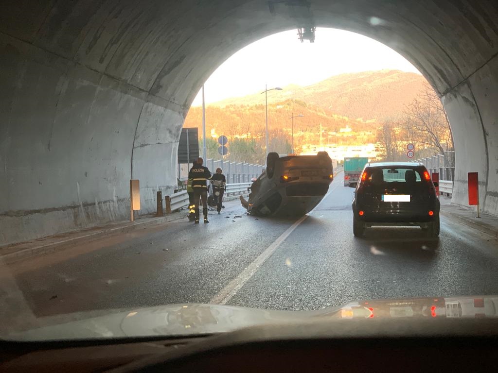Auto ribaltata: galleria e Provinciale temporaneamente chiuse