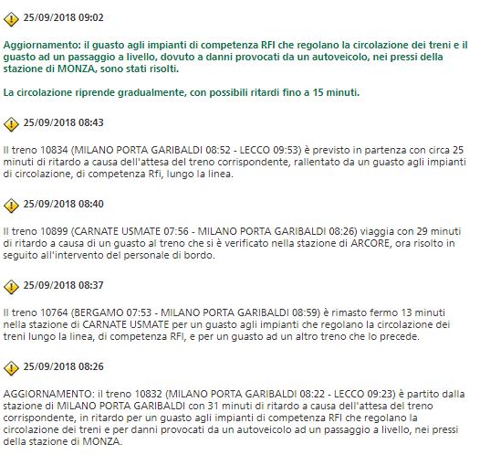 La problematica si è verificata questa mattina nei pressi della stazione di Monza, nodo decisamente nevralgico. Per questo ne hanno risentito tutte le linee utilizzate dai pendolari lecchesi, brianzoli e valtellinesi. Ecco la situazione linea per linea.