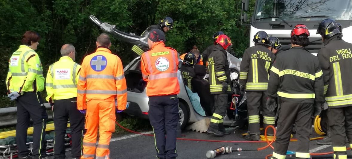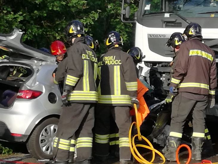 Auto si schianta contro un camion