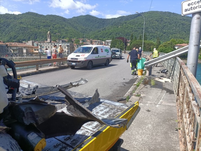 Auto si schianta sul Ponte di Olginate e distrugge il guardrail