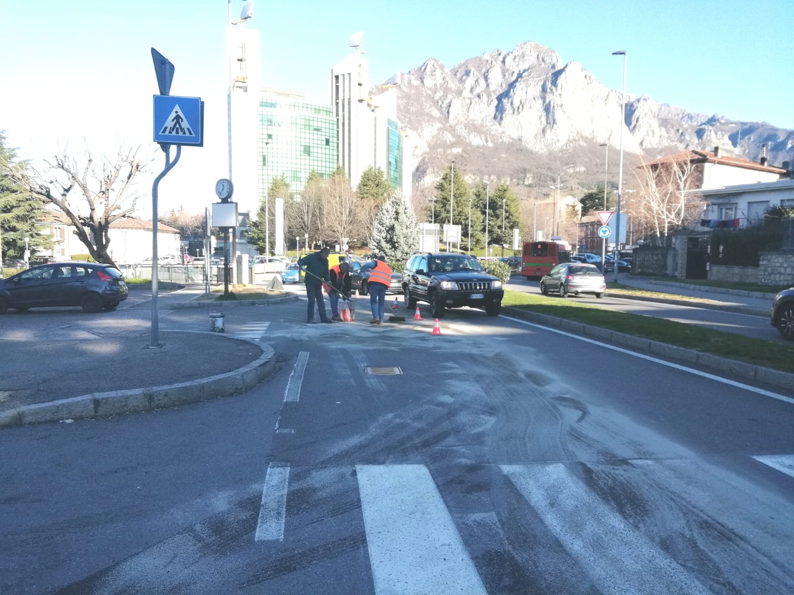 Autocarro perde gasolio in strada: traffico in tilt a Lecco. L’incidente è avvenuto nella prima mattinata di oggi, lunedì 11 marzo 2019, nei pressi del Centro Commerciale la Meridiana, pochi metri prima della rotonda all’altezza degli istituti Parini e Badoni.