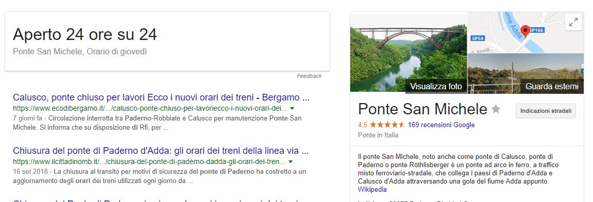 Ridiamo per non piangere, verrebbe da dire. Sì perchè oltre il danno, almeno in rete c’è anche la beffa. Infatti se in rete si cercano informazioni sul ponte san Michele il più noto dei motori di ricerca assicura che oggi, giovedì, sarà aperto 24 ore su 24