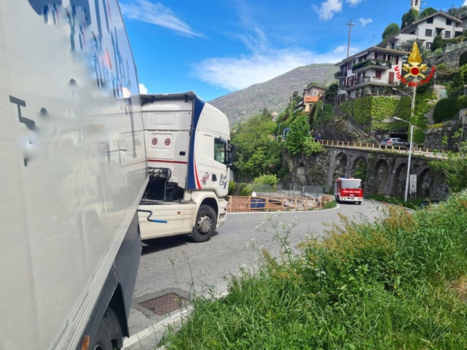I pompieri del distaccamento di Bellano sono stati chiamati infatti a intervenire sulla Sp.60 per un grosso automezzo rimasto bloccato su un tornante mentre percorreva la provinciale in discesa verso il paese.