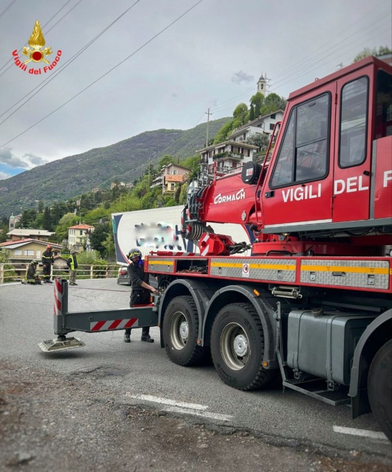 Mobilitazione dei Vigili del fuoco nel primo pomeriggio di oggi, giovedì 18 aprile 2024, per un autotreno bloccato a Bellano.