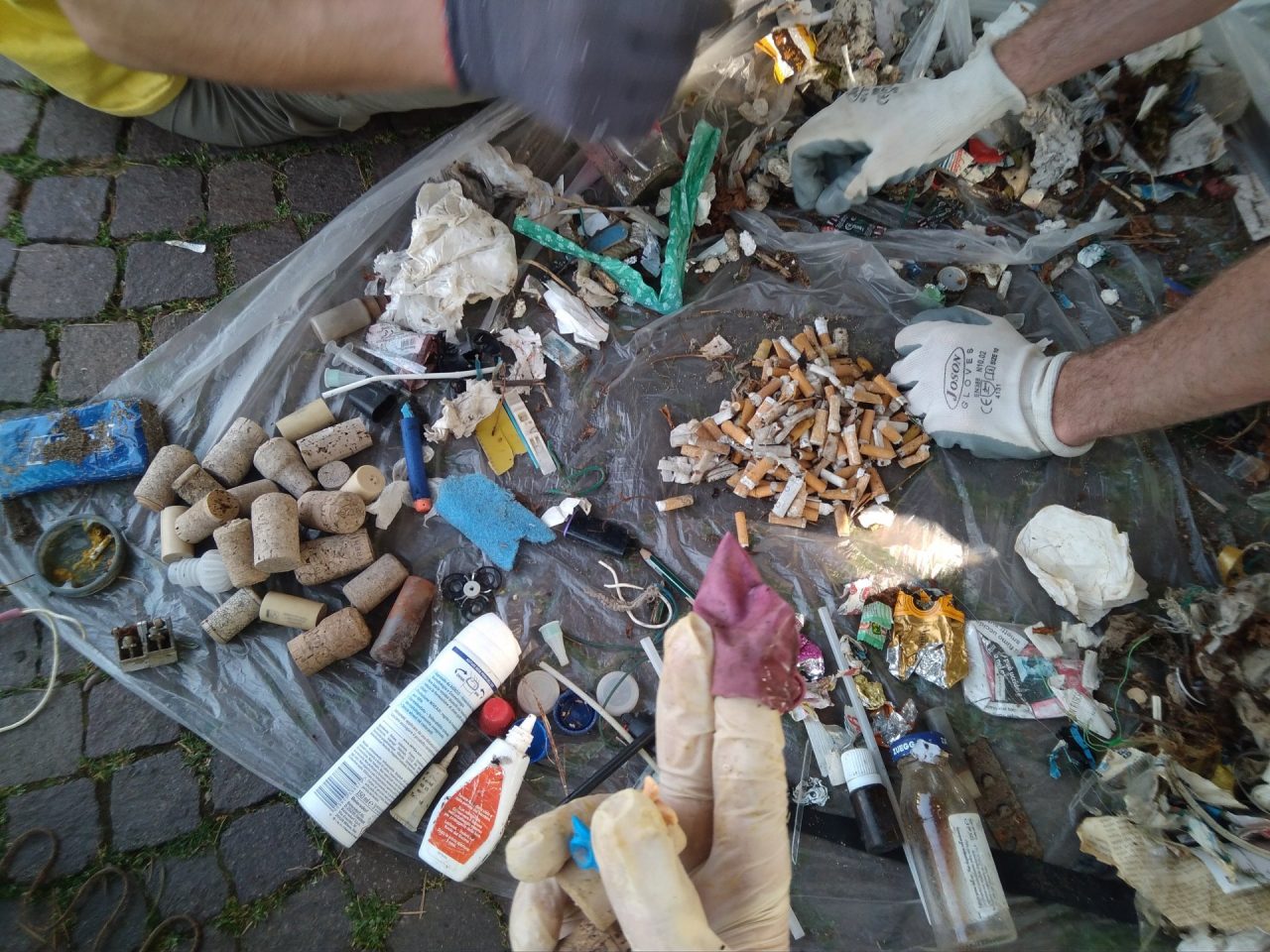 In circa un’ora sono stati ritrovati per lo più oggetti di plastica. Ma anche 500 mozziconi di sigaretta, 70 incarti di caramelle e merendine, più di 80 singoli pezzi di polistirolo. Molti erano così frammentati da risultare irrecuperabili. Inoltre almeno 100 frammenti plastici di varia natura, involucri plastici dei pacchetti di sigarette, stoviglie di plastica, cannucce. Dulcis in fundo escrementi di cane nel sacchetto, fili da pesca e bastoncini dei cotton-fioc.