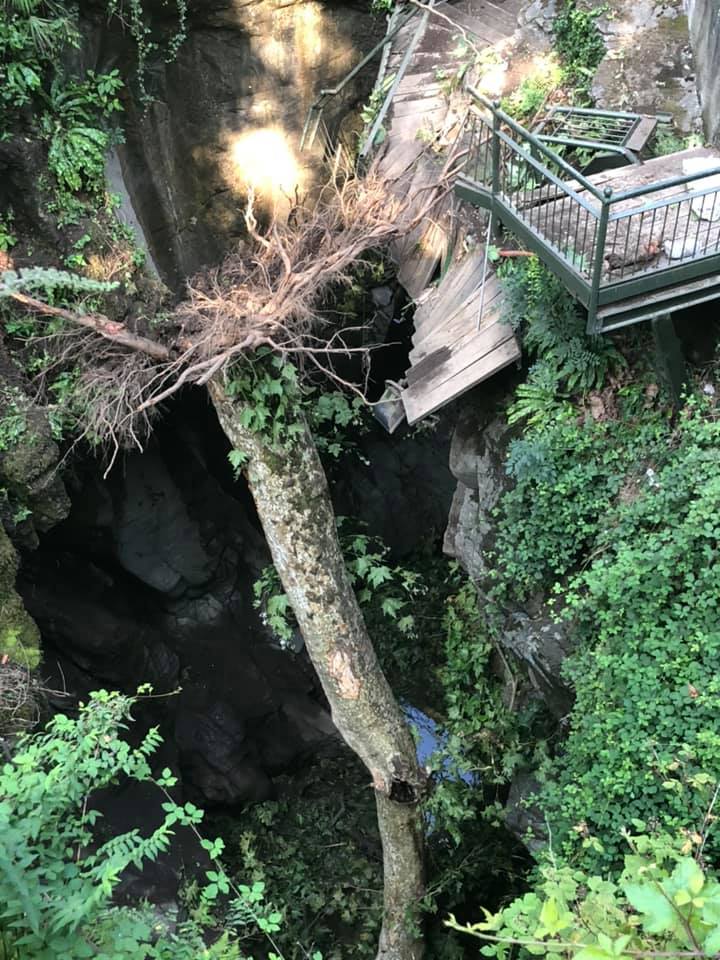 Sfiorata la tragedia all’Orrido di Bellano: un grosso platano secolare si è abbattuto nella gola naturale durante l’orario di apertura. Fortunatamente nessun ferito.