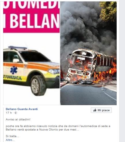 In campo, in prima persona, il sindaco di Bellano Antonio Rusconi”Sono davvero basito… sabato sono stato sul posto dalle 16.30 alle 1.30 di notte per l’incidente che ha coinvolto il pullman incendiato… sapete cosa ho potuto toccare con mano? La straordinaria grazia che abbiamo nel poter contare sui soccorsi a portata di mano…. straordinari vigili del fuoco e straordinari soccorritori del Soccorso Bellanese…. forze dell’ordine come i carabinieri e la polizia stradale subito presenti… e ovviamente la possibilità di contare sull’automedica che in pochi minuti è arrivata sul posto… quella giunta da lecco nn è servita… ma possiamo pensare veramente che chi abita sul lago e nelle valli delle aree interne (valsassina, val d’esino, Valvarrone) debbano Attendere un medico da nuova olonio o da lecco in caso di emergenza?!? Non tollereremo di perdere un servizio così primario ed essenziale per il nostro territorio!”