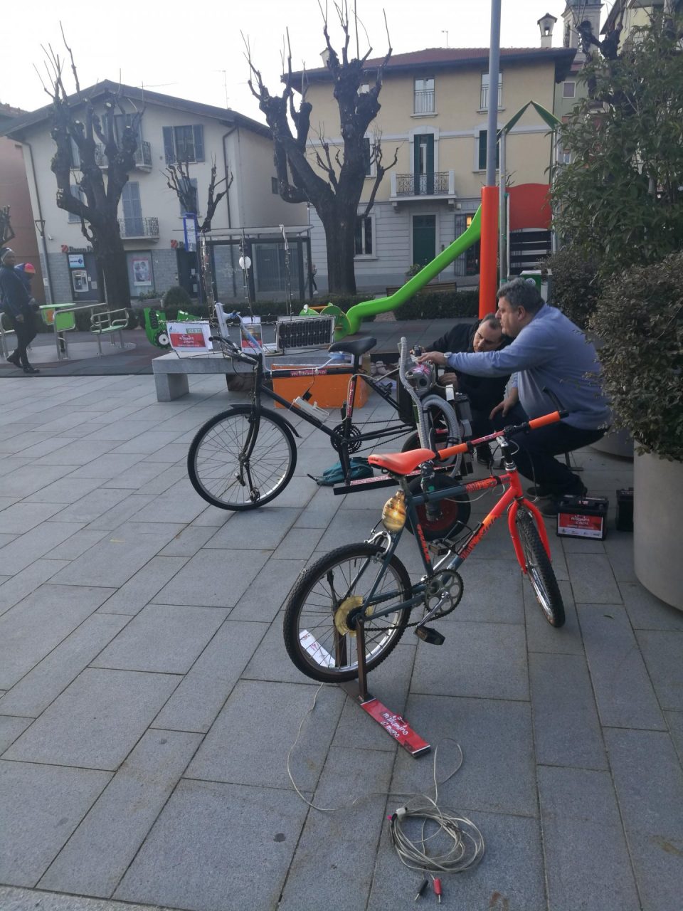 Calolzio: illuminato il municipio con la forza delle… pedalate FOTO