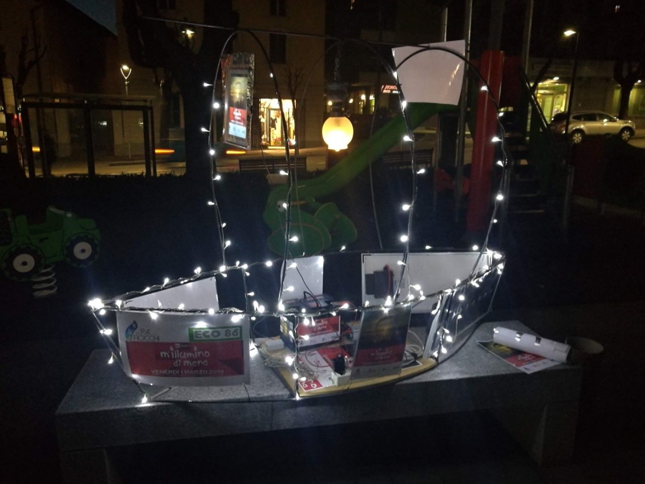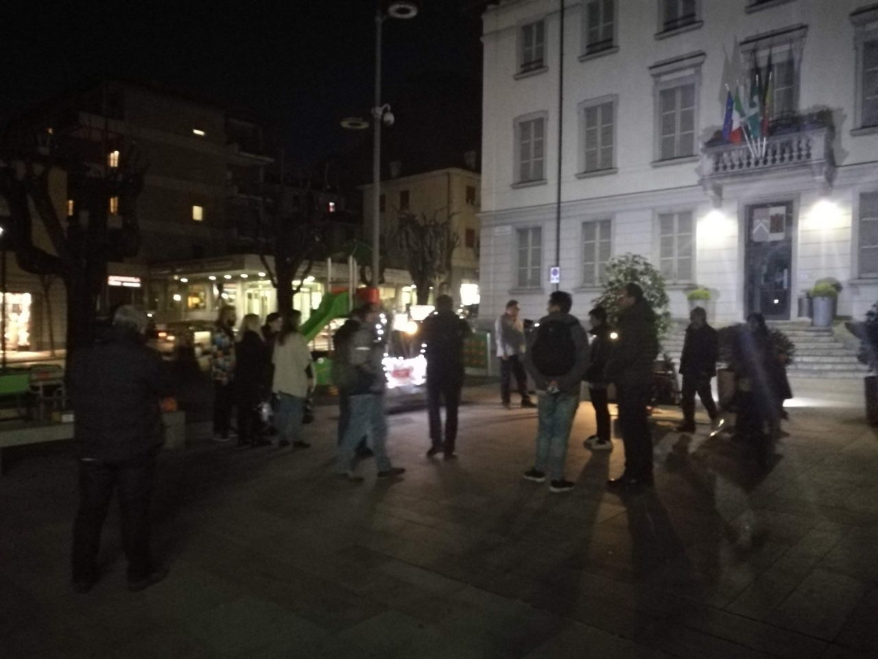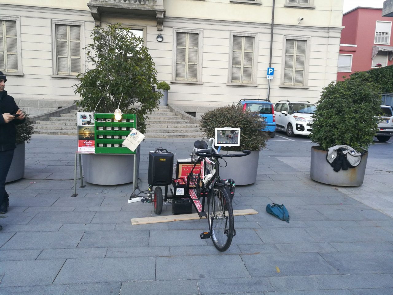 Alle ore 19, con il calar del buio, è stato illuminato il municipio grazie all'energia auto prodotta con dinamo, biciclette e la forza delle pedalate.