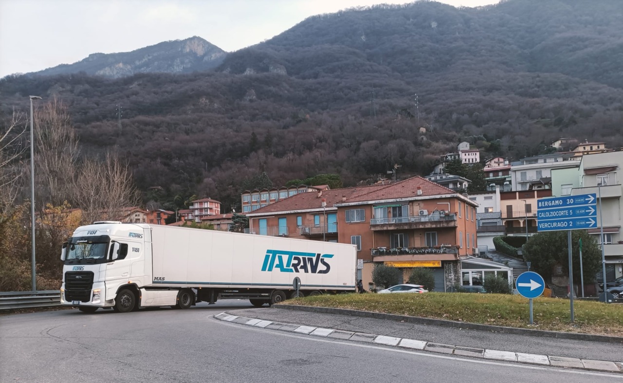 Camion bloccato alla rotonda di Chiuso paralizza il traffico: mattinata di caos sulla Lecco–Bergamo