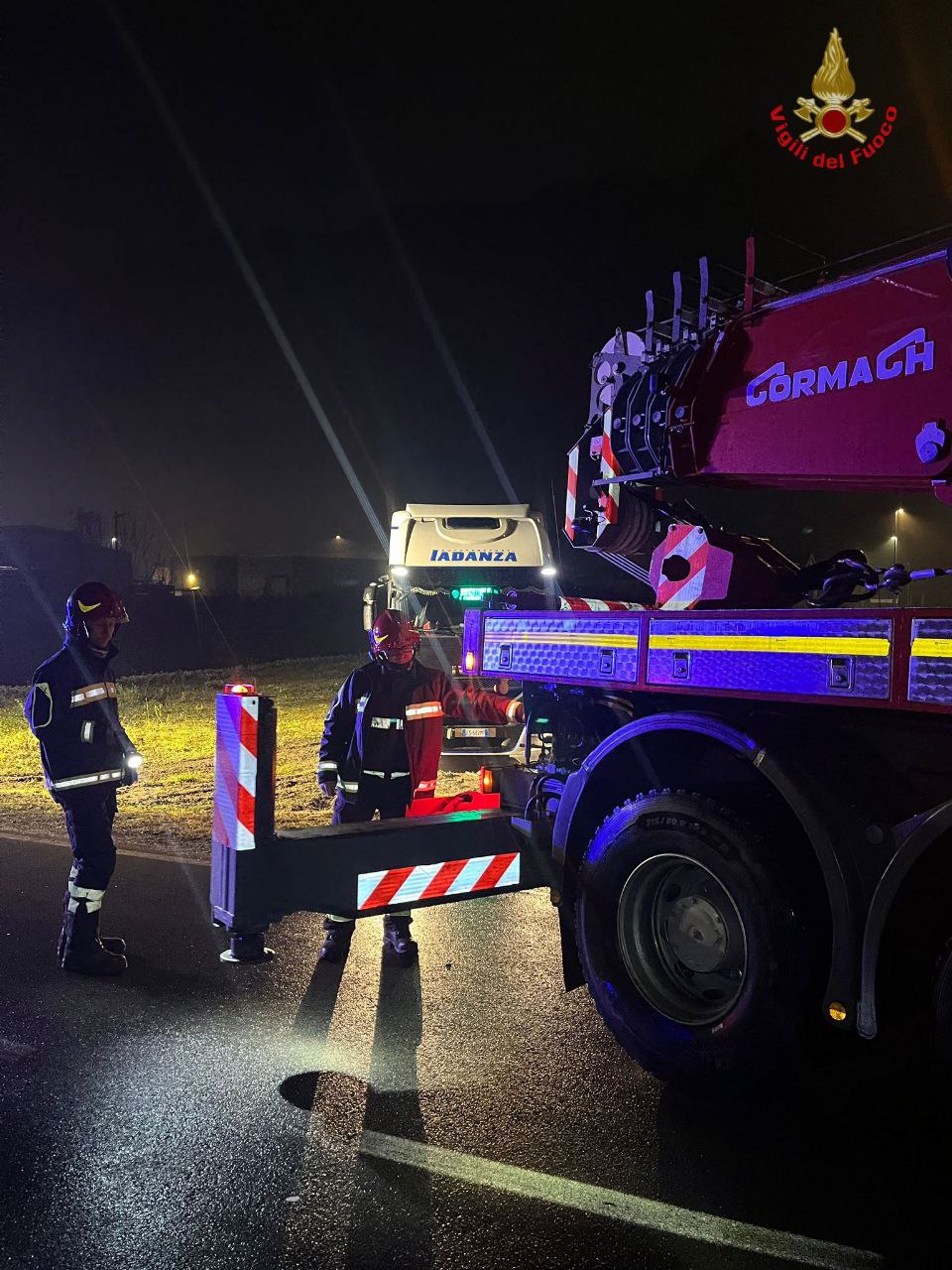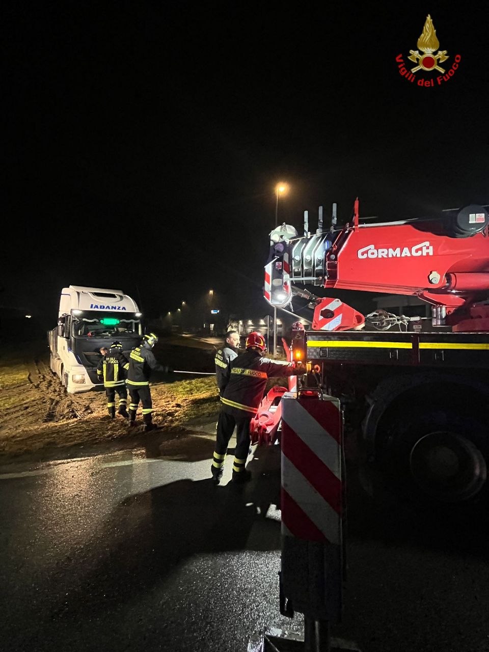 Durante la notte tra giovedì 4 e venerdì 5 dicembre 2025, i Vigili del Fuoco di Lecco sono intervenuti per soccorrere un autoarticolato rimasto in panne e finito fuori strada in un campo nel comune di Taceno.