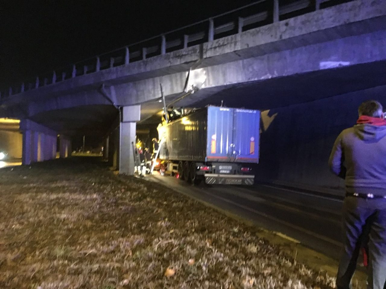 Tir incastrato sotto il ponte