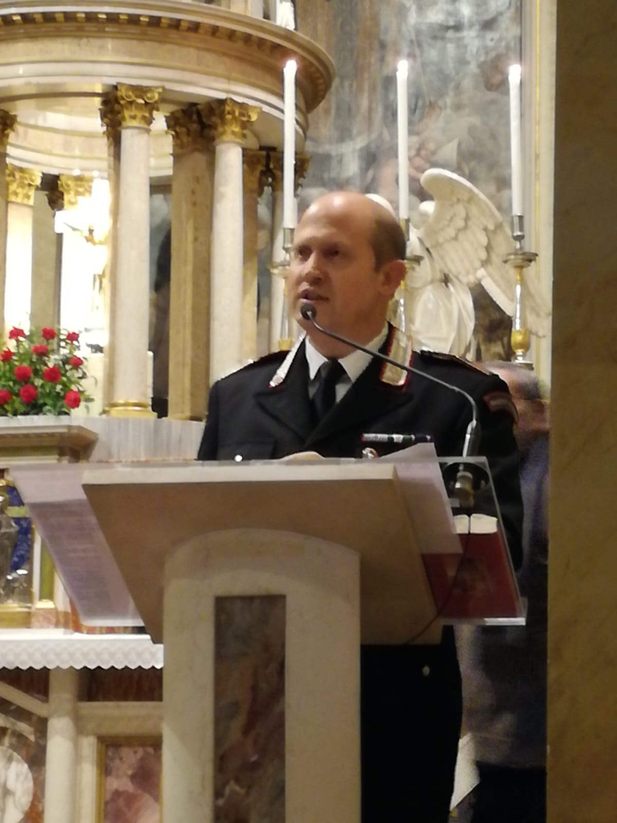 Il luogotenente Edonio Pecoraro, comandante della Stazione dei Carabinieri di Merate, sul pulpito di Sant’Ambrogio per un’inedita lezione su truffatori e malintenzionati.