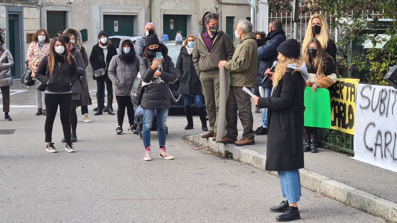 Di seguito gli oratori del sit-in hanno descritto la figura di Gilardi (“ex professore di letteratura, uomo colto, gentile, sensibile, amante della campagna e degli animali, e anche della poesia”) e riepilogato la vicenda che lo vedrebbe “vittima lesa nella sua dignità”. Un racconto scandito dalla platea con “Carlo libero!” e “vergogna!”.