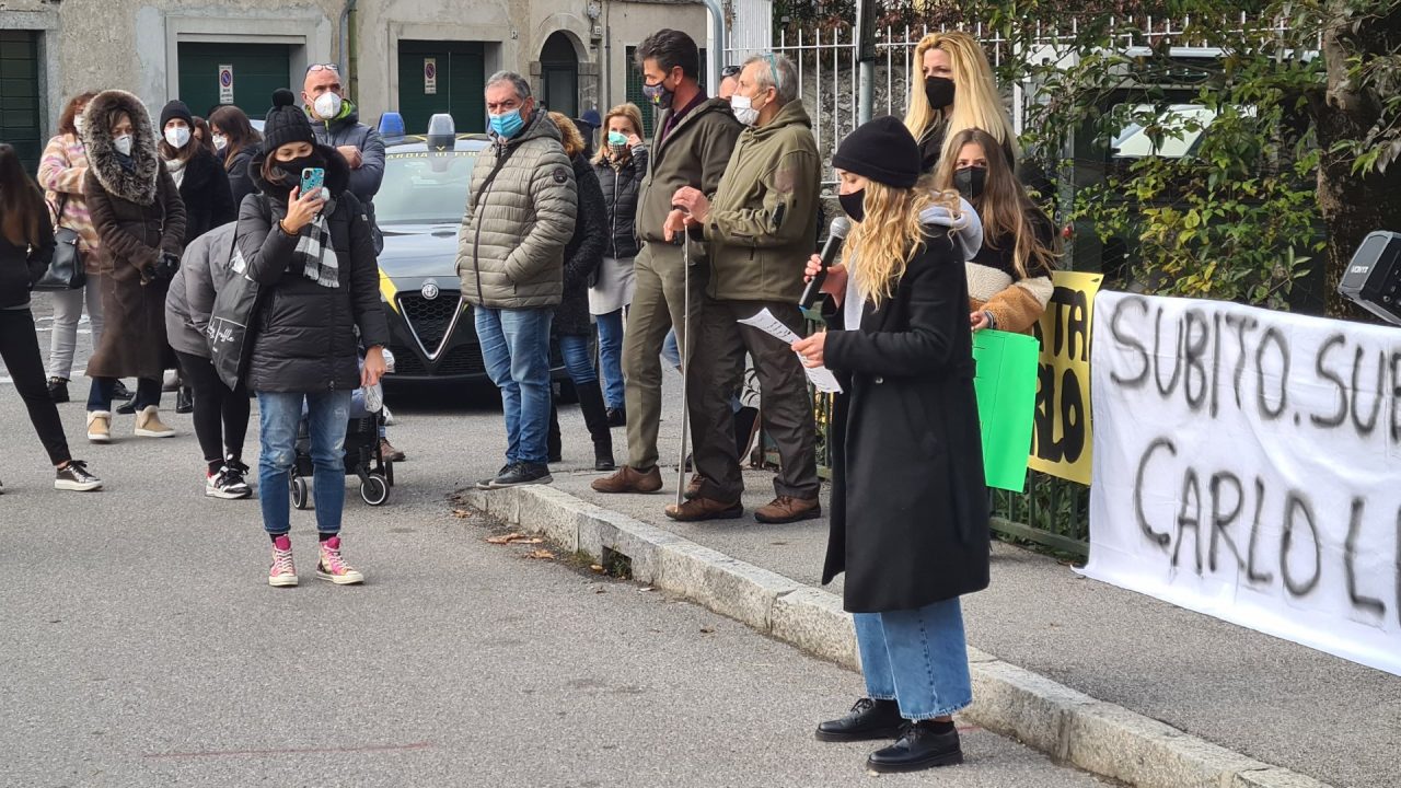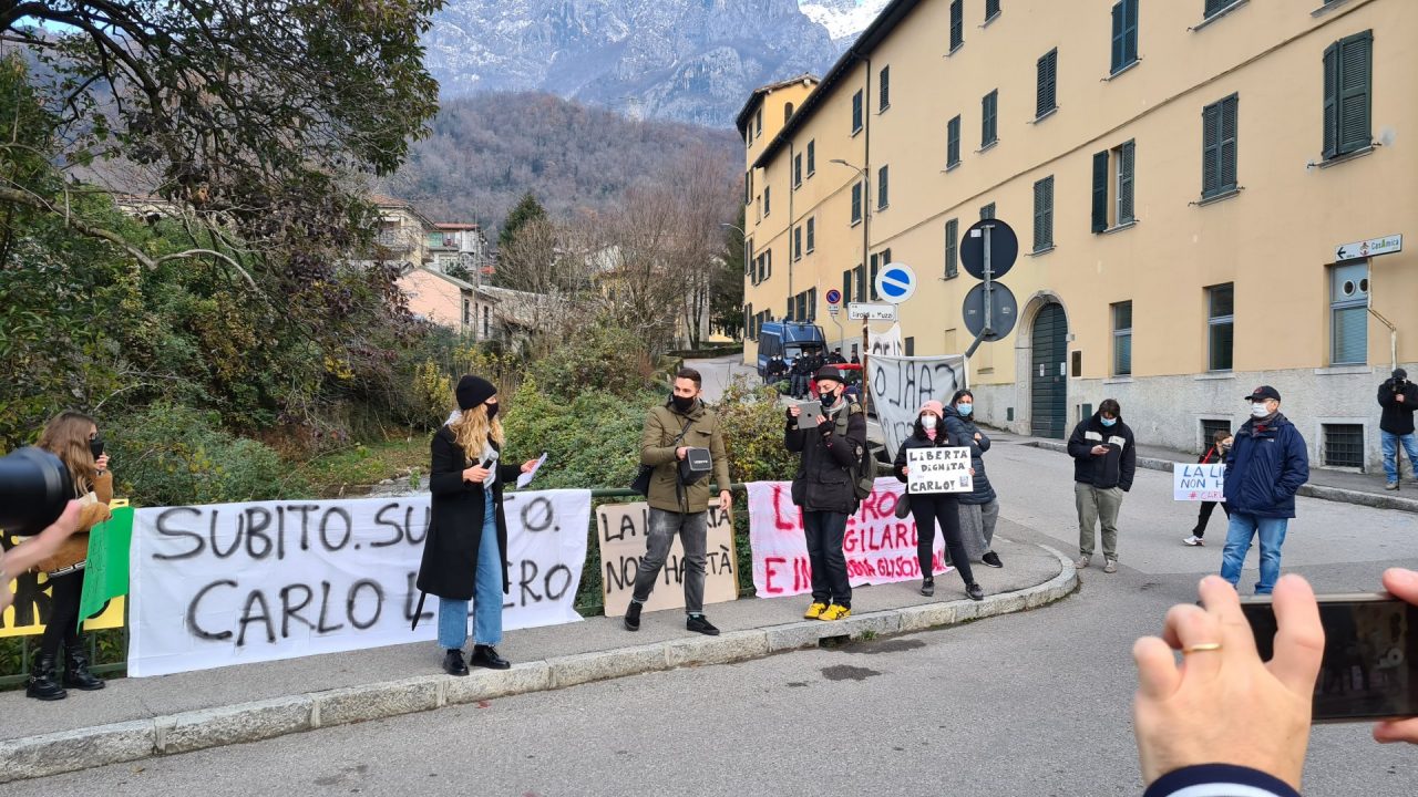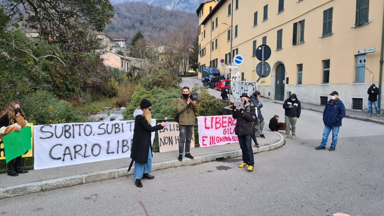“Carlo non sei solo”: sit-in sotto l’Airoldi e Muzzi per liberare il professore