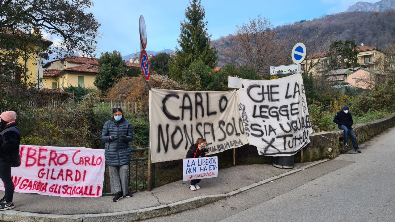 Il tam tam era stato lanciato su Facebook da un “gruppo di sostegno” a seguito dell’ultimo servizio mandato in onda dalle Iene martedì 8 dicembre. Dalle 15 alle 17 di quest’oggi,  davanti ai cancelli della storica casa di riposo lecchese a Germanedo dove Carlo Gilardi, secondo le Iene, “è bloccato contro la sua volontà”, si è radunata una piccola folla di manifestanti. Quinta coreografica una serie di striscioni: “Libero Carlo Gilardi”, “Carlo non sei solo”, “Che la legge sia uguali per tutti”, “libertà e dignità per Carlo Gilardi”, “la libertà non ha età” alcuni dei messaggi vergati su lenzuoli e cartelli. Obiettivo dichiarato dagli organizzatori: “Mandare un messaggio forte sia alla direzione della RSA che all’amministratrice di sostegno”. Tesi propugnata: “È assurdo come venga negata la libertà di una persona lucida e contraria a questo trattamento (il ricovero in casa di riposo, ndr), che di fatto ha un amministratore di sostegno per la cura del suo patrimonio e non un tutore legale che ne fa le veci. È una situazione inaccettabile per il valore della libertà personale del singolo individuo ed è necessario che sia chiara l’indignazione pubblica”. L’auspicio: “Che prima di Natale Carlo Gilardi venga dimesso e possa esprimere personalmente la sua opinione e il suo volere”.