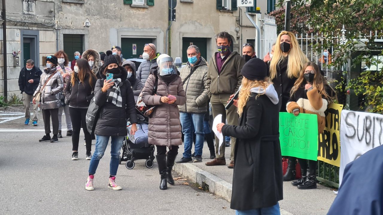 Una piccola folla a Germanedo, armata di megafono e striscioni. Tutt'attorno un anello di forze dell'ordine. La casa di riposo annuncia "un progetto di rientro" a casa per l'ospite, concertato con le istituzioni coinvolte.