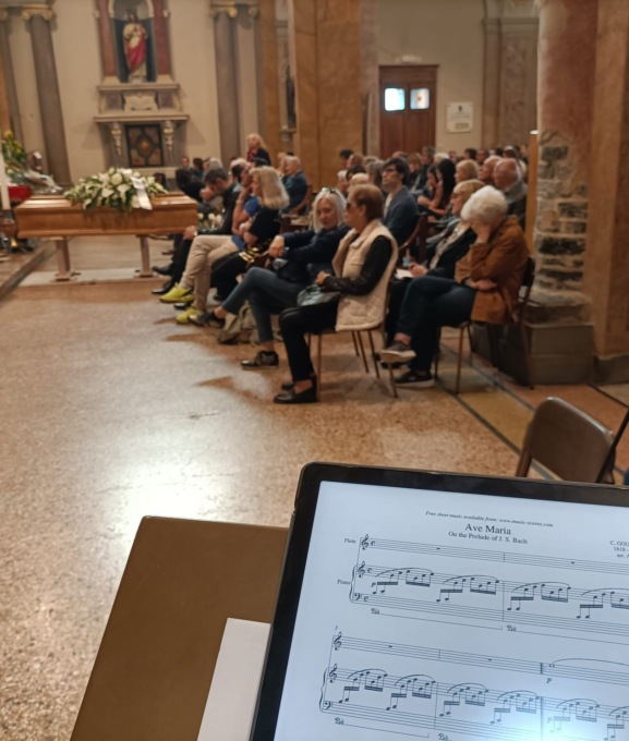 La cerimonia funebre è stata animata musicalmente dai professori di musica, amici di lunga data del maestro di Peppino, Michele Santomassimo all’organo, Francesco Romeo al violino e Roberto Mazzoni alla viola che, durante il momento della comunione, hanno eseguito la Romanza in Do, alla quale Peppino era affezionato.