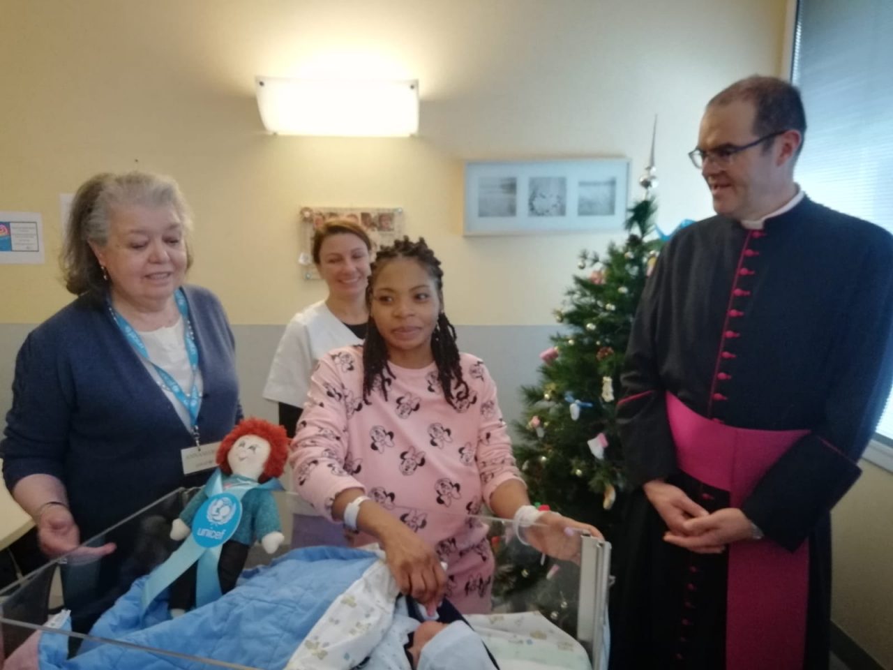 Stamattina i piccoli Matilde e Khindash hanno ricevuto una speciale visita accompagnata da un significativo dono. Anna Maria Navielli, presidentessa di Unicef Lecco, ha raggiunto, come capita ormai ad ogni Capodanno, l’ospedale Manzoni per consegnare un prezioso riconoscimento a nome della sua associazione. Con lei anche Angelo Fontana e il prevosto di Lecco, monsignor Davide Milani. Ai due bimbi è stata consegnata la pigotta di Ambasciatori Unicef.