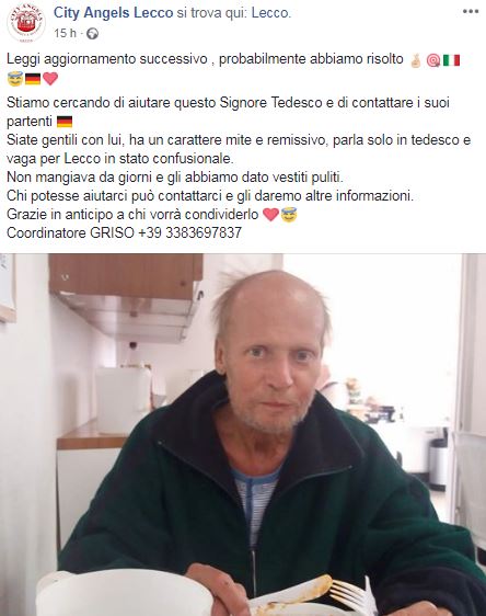 I City Angels Lecco meno di 24 ore fa avevano lanciato un appello su Facebook, rivolto a tutti i lecchesi, per aiutare un signore tedesco a trovare i suoi parenti.