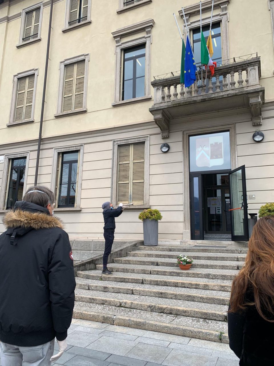 Bandiere a mezz’asta e silenzio, Calolzio ricorda le vittime del Coronavirus.