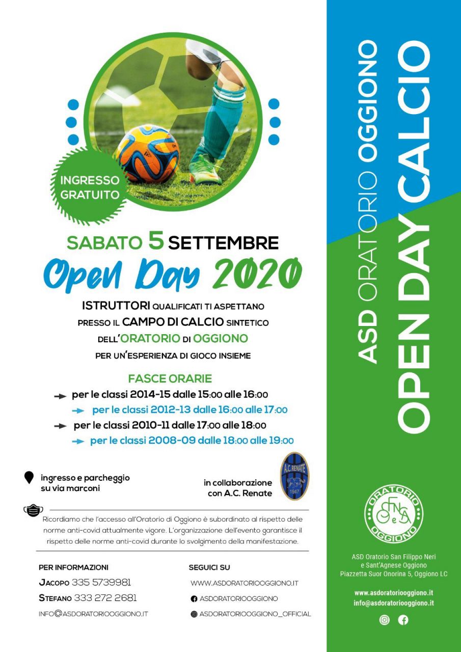 Sono anche previsti due open day per i settori calcio e volley per sabato 5 settembre sui campi di calcio e di green volley dell’oratorio di Oggiono.
