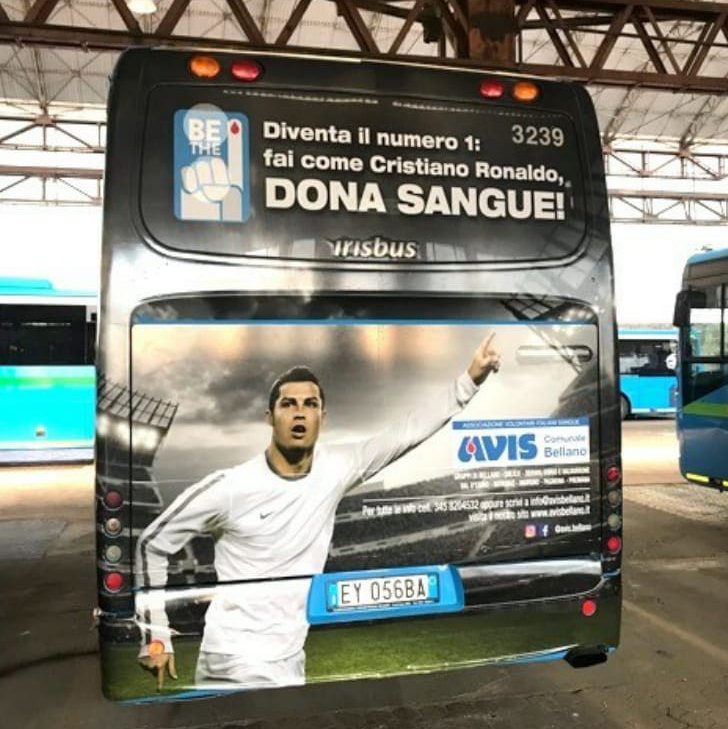 Alcune iniziative che aiuteranno a promulgare l’immagine di Avis con CR7: nuovi striscioni per tutti i gruppi contenenti tutti i contatti per diventare nuovi donatori; un pullman di linea ed infine un filmato che comparirà sul sito internet e su tutti i social.