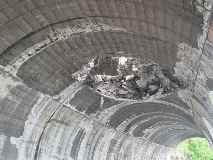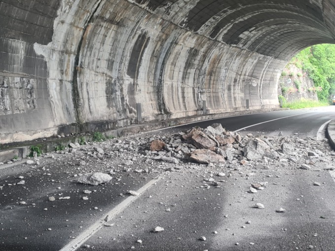 Galleria sfondata dalla frana: dalla montagna si sono staccati 500 metri cubi di materiale
