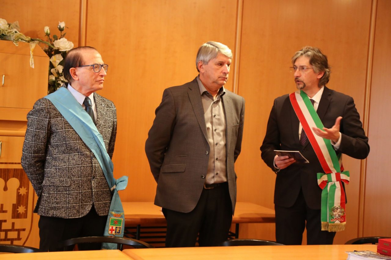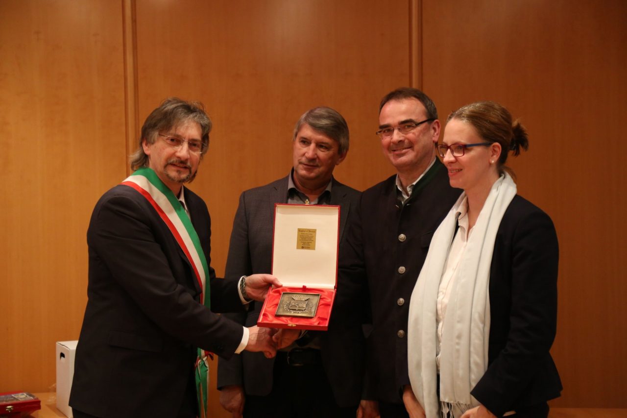 Un ruolo speciale lo ha avuto la dott.ssa Alice Dell’Oro, guida, interprete, traduttrice, mediatore,un factotum speciale per l’evento. Grazie a anche agli altri collaboratori citati nel comunicato. Il vice sindaco ha consegnato lo stemma del comune e le guide di Calolziocorte in inglese edite dalla Pro loco al Sindaco di Gussing , al presidente della fondazione e al rappresentante di un istituto scolastico.
