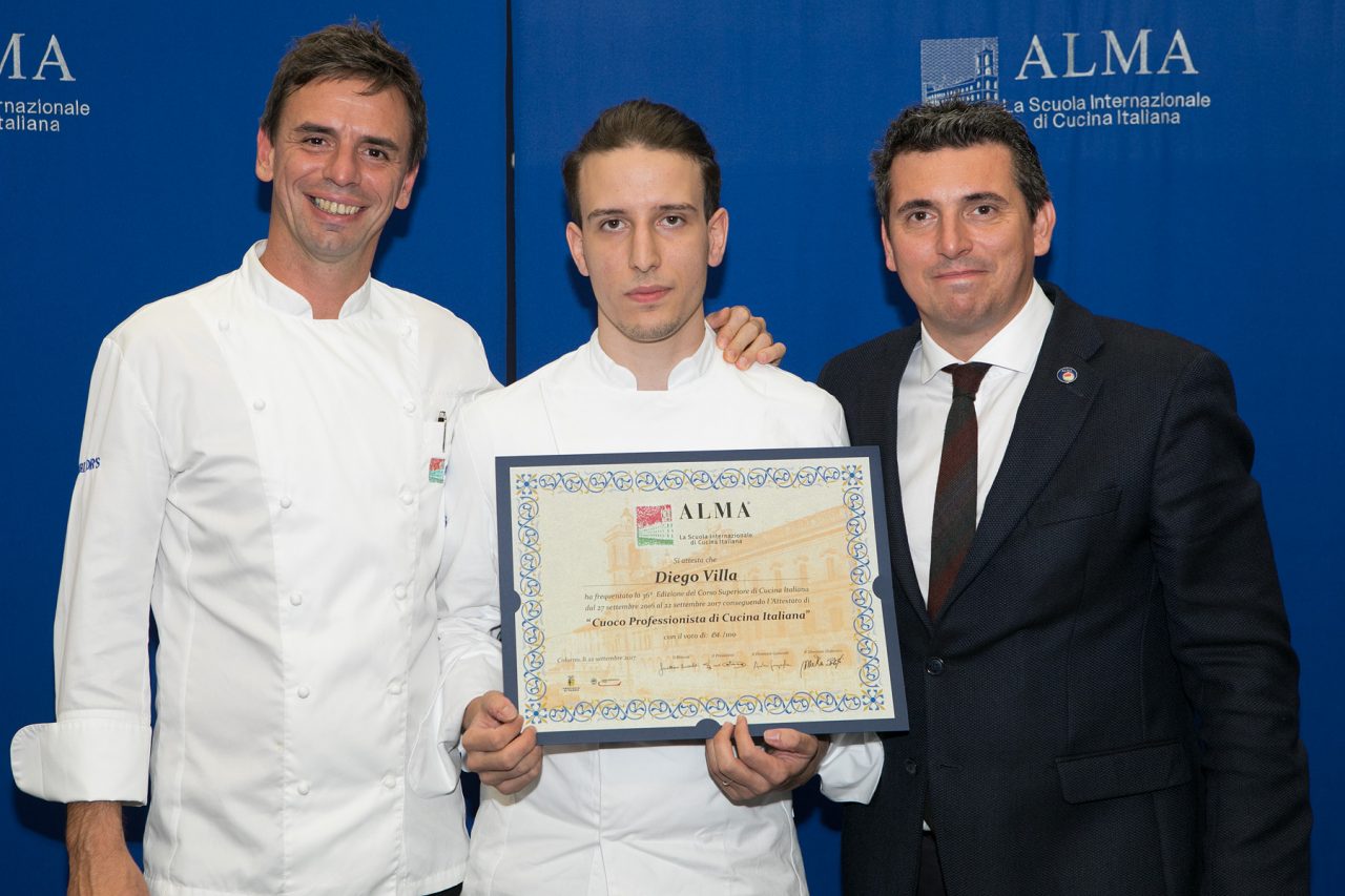 Diego Villa è cuoco professionista. 19 anni, missagliese, si è infatti diplomato alla Alma Scuola Internazionale di Cucina Italiana con altri 66 ragazzi provenienti da tutto lo Stivale.
