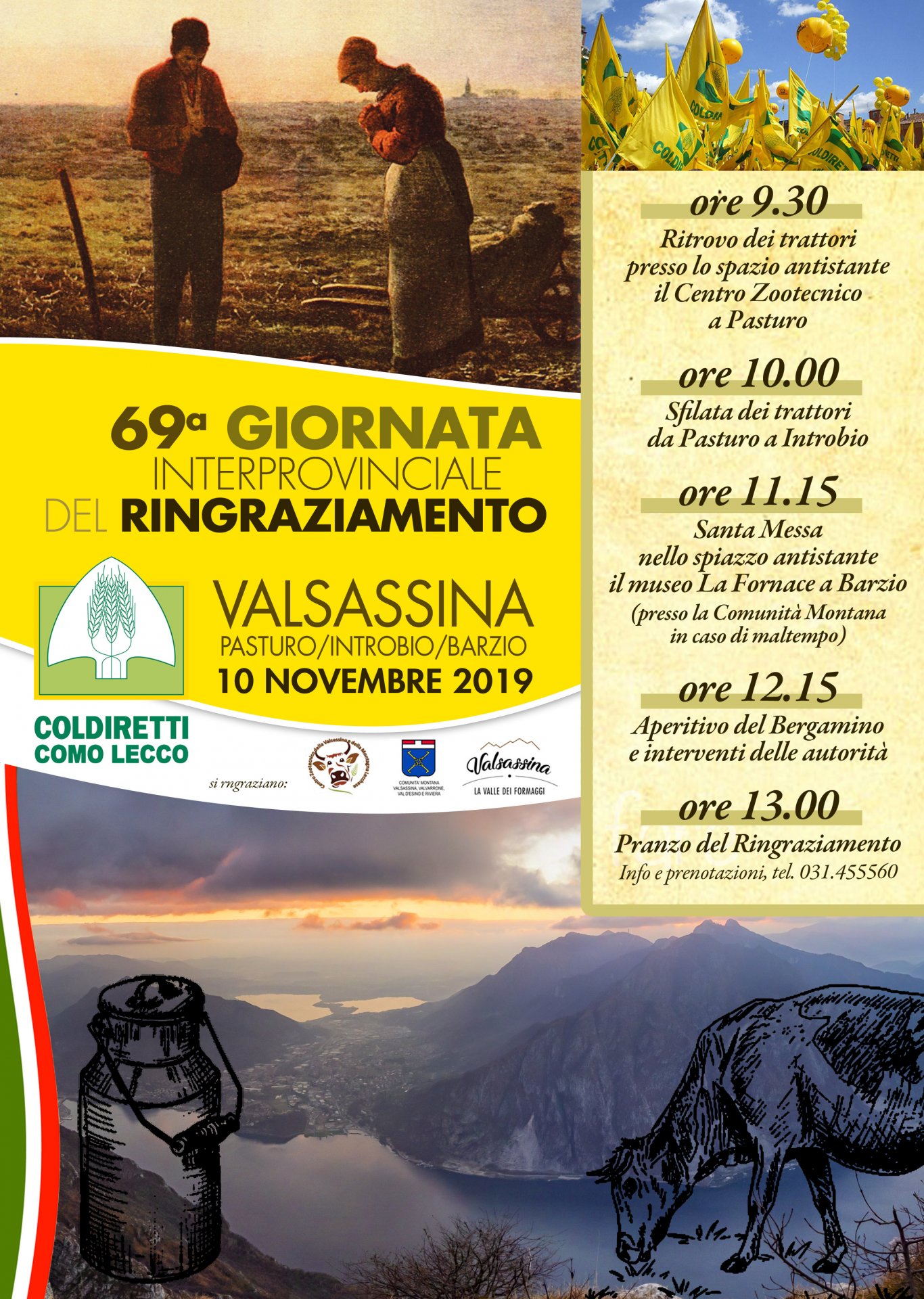 “Si tratta dell’evento centrale dell’anno agricolo” aggiunge il direttore dell’organizzazione agricola, Giovanni Luigi Cremonesi. “E’ un momento di confronto e discussione, al termine dell’annata agraria e della stagione dei raccolti. Dalla sua fondazione, Coldiretti attraverso la Giornata del Ringraziamento si richiama, ogni anno, alle proprie radici cristiane e vive con i propri associati questo forte momento di unione. L’evento, però, evidenzia anche la volontà di rapportarsi con il territorio rurale, evidenziandone le istanze e le criticità: quest’anno abbiamo scelto la Valsassina, una terra dove tanti giovani lottano per difendere il loro diritto a fare agricoltura e a fare impresa”.